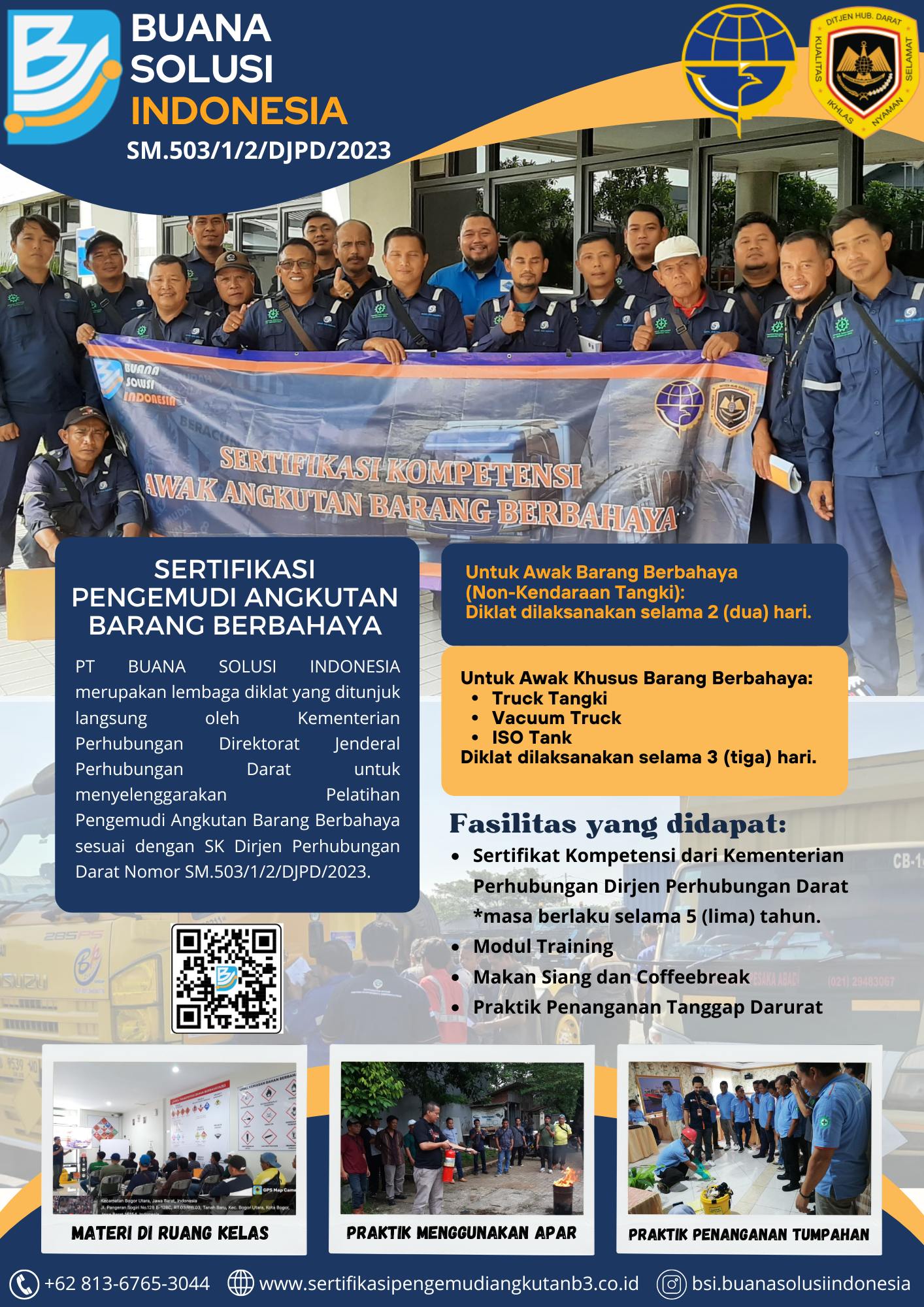 Dengan didukung oleh Sumber Daya Manusia yang handal, terampil dan profesional, serta didukung peralatan kerja yang memadai, komitmen kami adalah untuk maju bersama serta dapat memberikan pengetahuan dan wawasan kepada para perusahaan angkutan Barang Berbahaya khususnya para pengemudi Barang Berbahaya dan Limbah Barang Berbahaya.